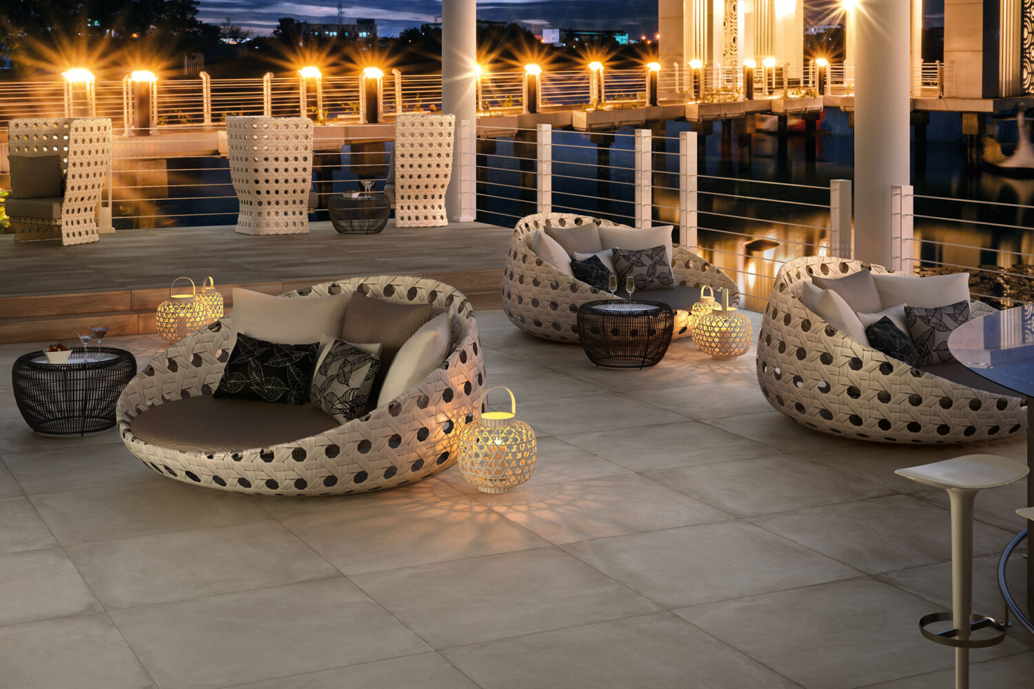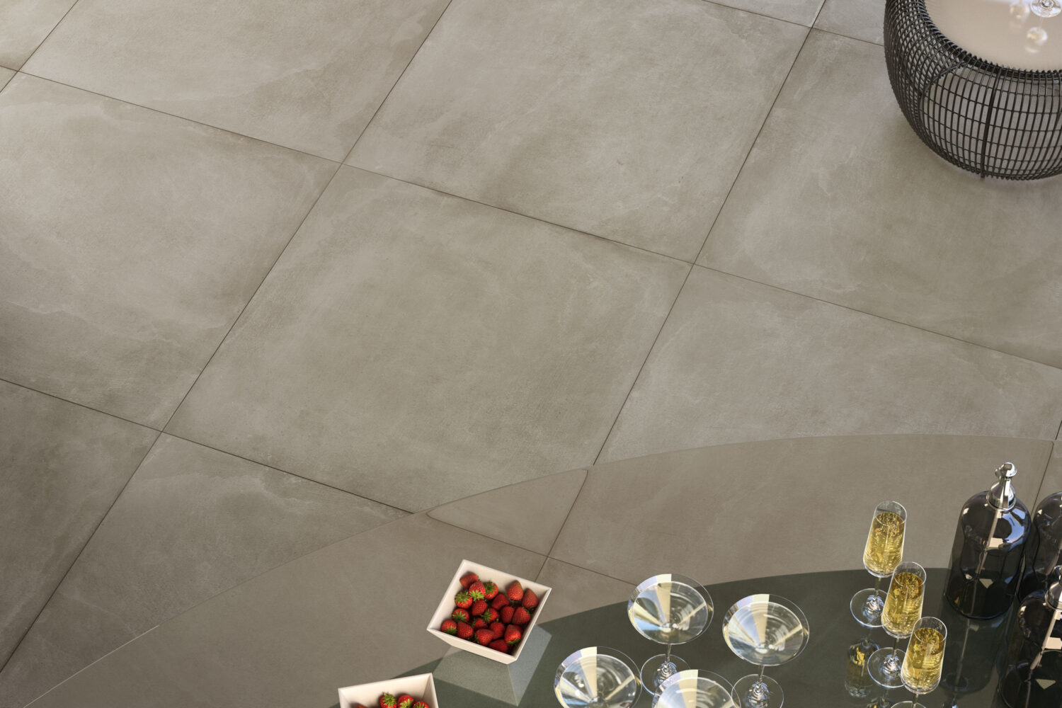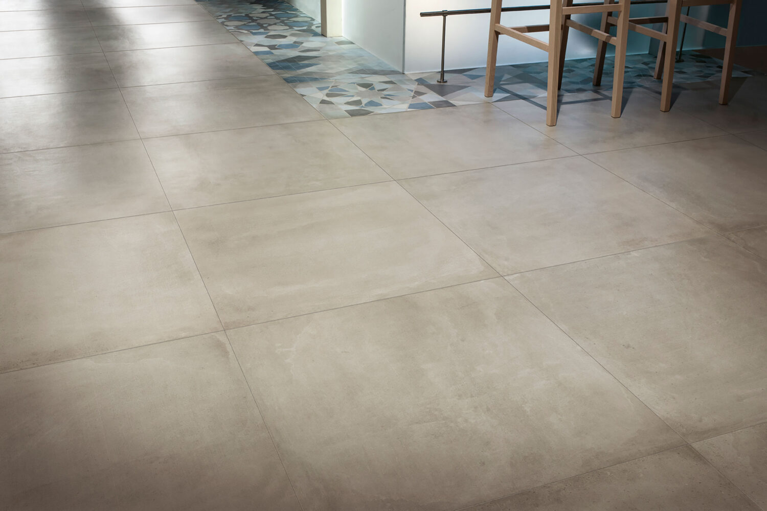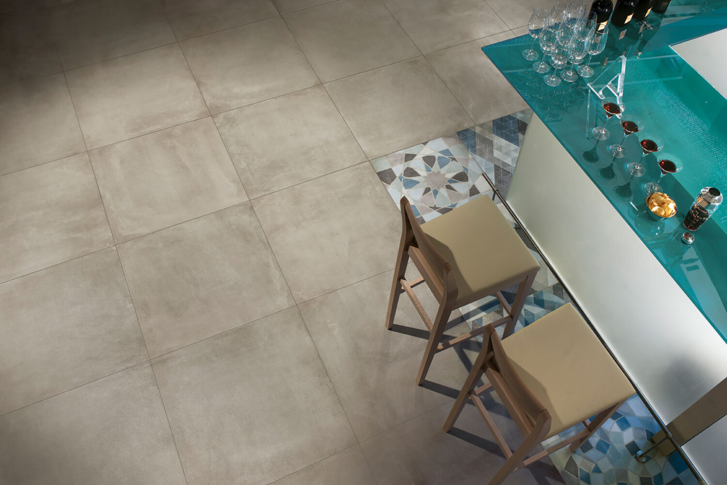 Das strenge Erscheinungsbild von Zement und die Wärme des Cotto schafft ein architektonisch reines Ambiente von behaglicher Atmosphäre. Entstanden aus der Begegnung einer gelebten Optik und eines natürlichen textilen Gefühls.